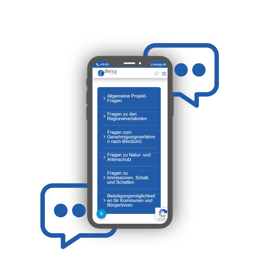 Auf der iTerra-Website erhalten Sie weitere Informationen zu dem Vorhabenträger sowie anderen Windpark-Projekten. Darüber hinaus finden Sie dort eine Auswahl zu den gängigsten Fragen und Antworten aus den Themenbereichen Windenergie und Windparks.